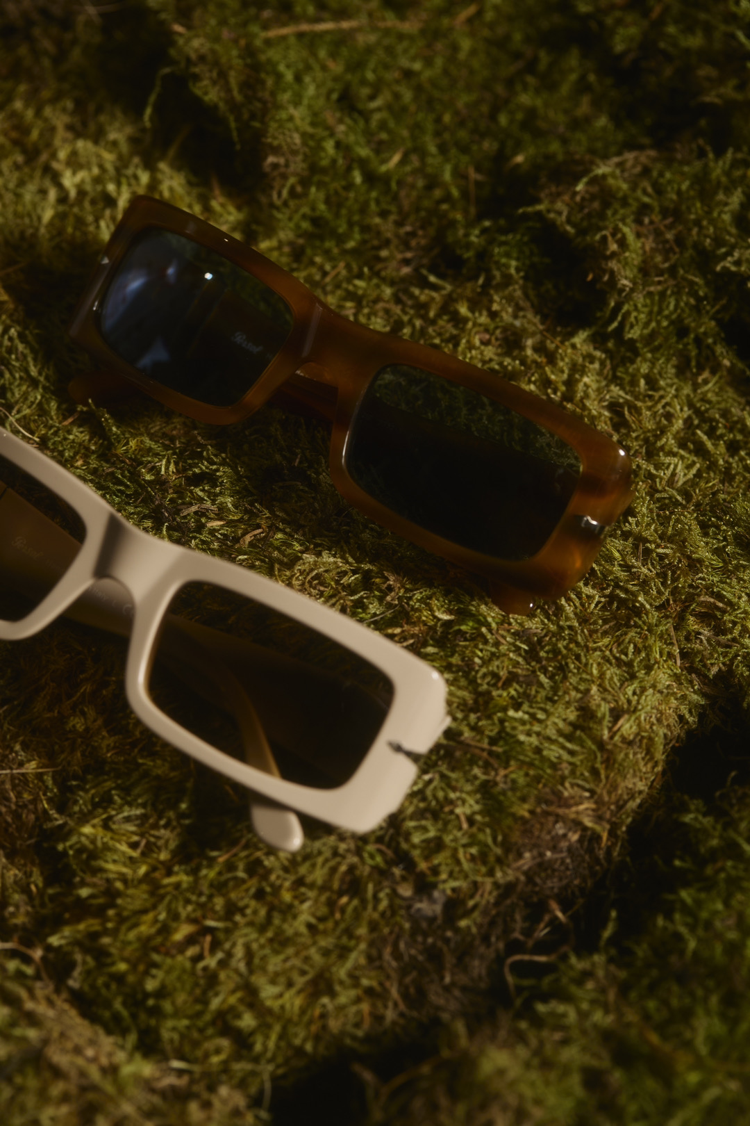 Persol propone questa forma rettangolare unisex stretta e dallo stile audace. Colore tenue o avana con aste ampie per un look di tendenza.